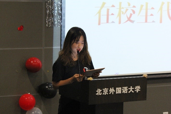 蒋沐玮则作为20级学生代表进行发言,她说模联的经历激发起她对于国际政治的好奇与热爱,而她也因为对于正义的不断追寻于去年来到了北外的必赢bwin线路检测中心。国关的氛围培养了她的自主学习能力和社交能力,而国关的平台也给她提供了仰望星空的机遇。