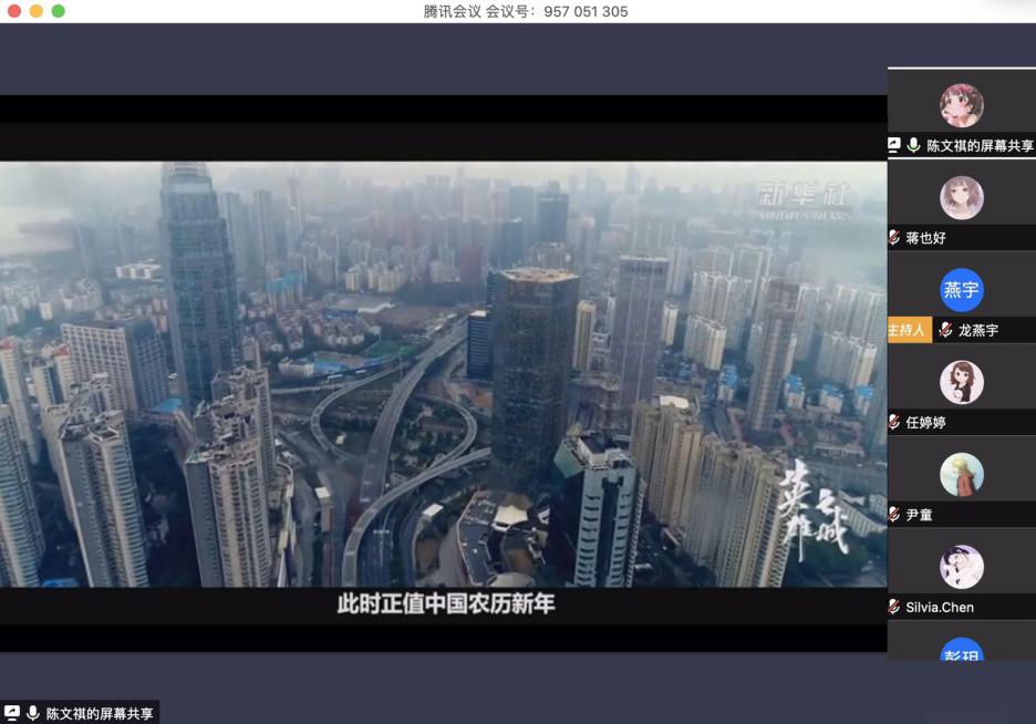 1902班的同学与他们的法语语伴在疫情期间保持联络,守望相助、同舟共济,展现出跨越国际的抗疫决心与深厚情谊。在分享会中,舒畅分享了新加坡关于疫情的防治,魏梁樑同学分享了自己的朋友身居国外面对疫情的经历;孙艺妍分享了两部疫情相关的电影《血疫》、《切尔诺贝利》;胡音格分享了晚清时期抗击疫情的案例...大家沉浸其中,积极参与互动,取得了良好的效果。