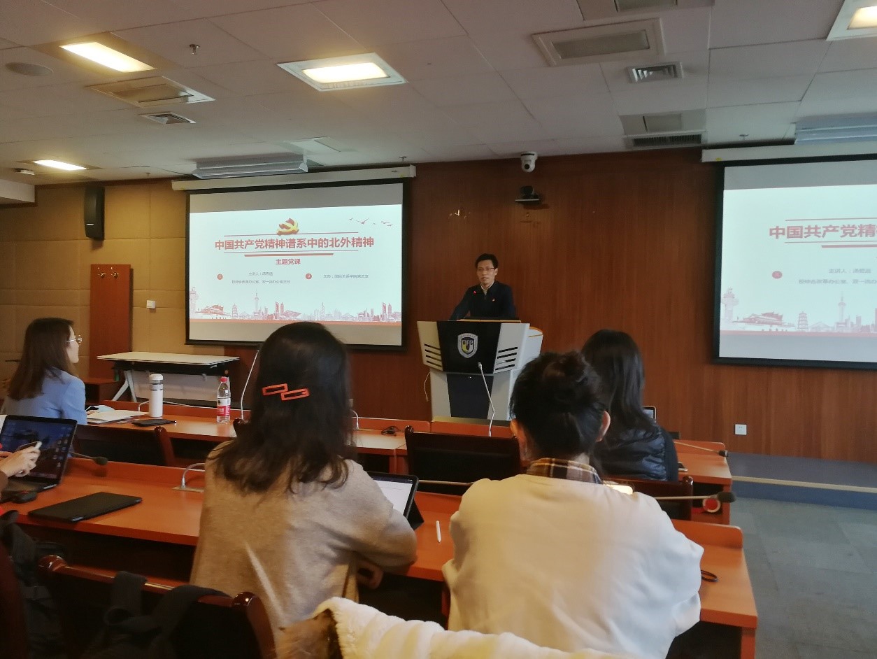 贯彻落实党的十九届六中全会精神,深入学习习近平总书记给北外老教授回信精神,加强学生党员党性修养,1222日下午,必赢bwin线路检测中心党总支邀请北京外国语大学综合改革办公室、双一流办公室主任汤哲远老师讲授党课,主题为“中国共产党精神谱系中的北外精神”。党课由国关辅导员、学生第二党支部书记钱梦婷老师主持,必赢bwin线路检测中心学生第一党支部、第二党支部党员及预备党员同学们参加了党课。