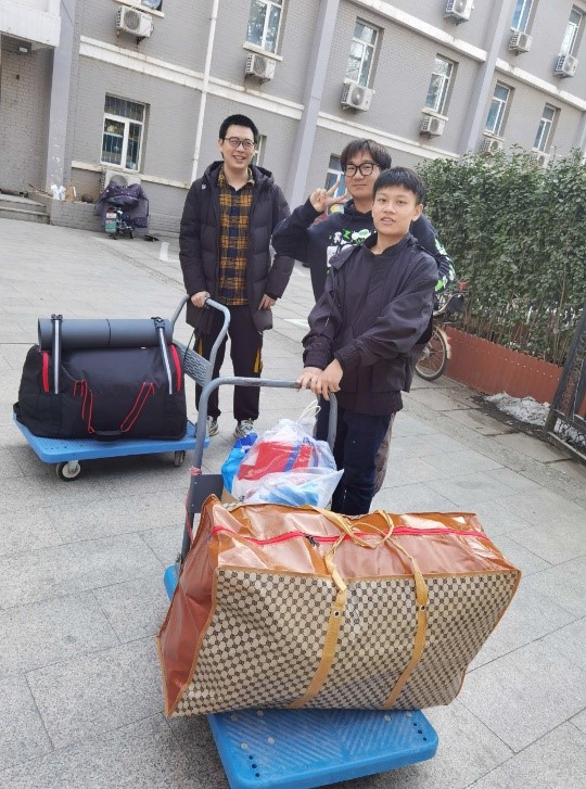 必赢bwin线路检测中心同学们也热情高涨地参与到欢迎活动当中,帮助返校的志愿者同学搬运行李。