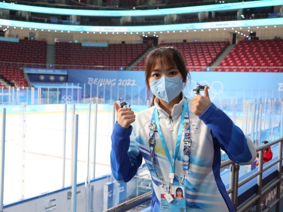 2022年北京冬奥会中,我在五棵松体育中心担任场馆礼宾志愿者,主要负责为赛时到访竞赛场馆的奥林匹克大家庭成员提供服务支持,是赛时最前端和最重要的一个环节。