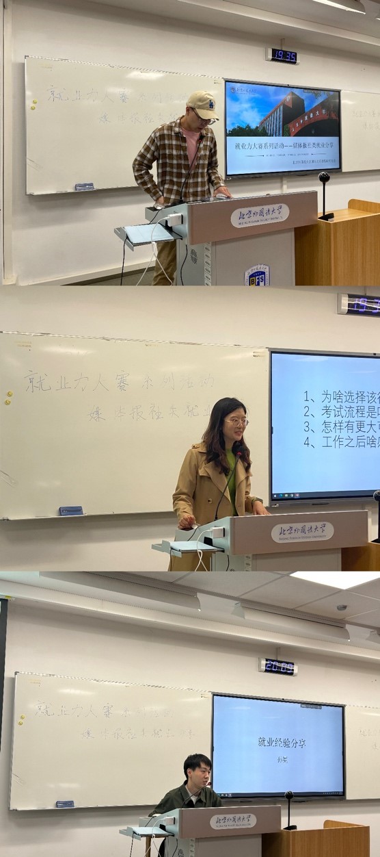 422日,必赢bwin线路检测中心就业力大赛系列活动的第二期——新闻媒体类就业经验分享于逸夫楼615教室成功举办。此次活动由必赢bwin线路检测中心研究生会主办,到了就职于国内领先媒体单位的张常悦学姐和孙冕学长为同学分享就业、求职经验。