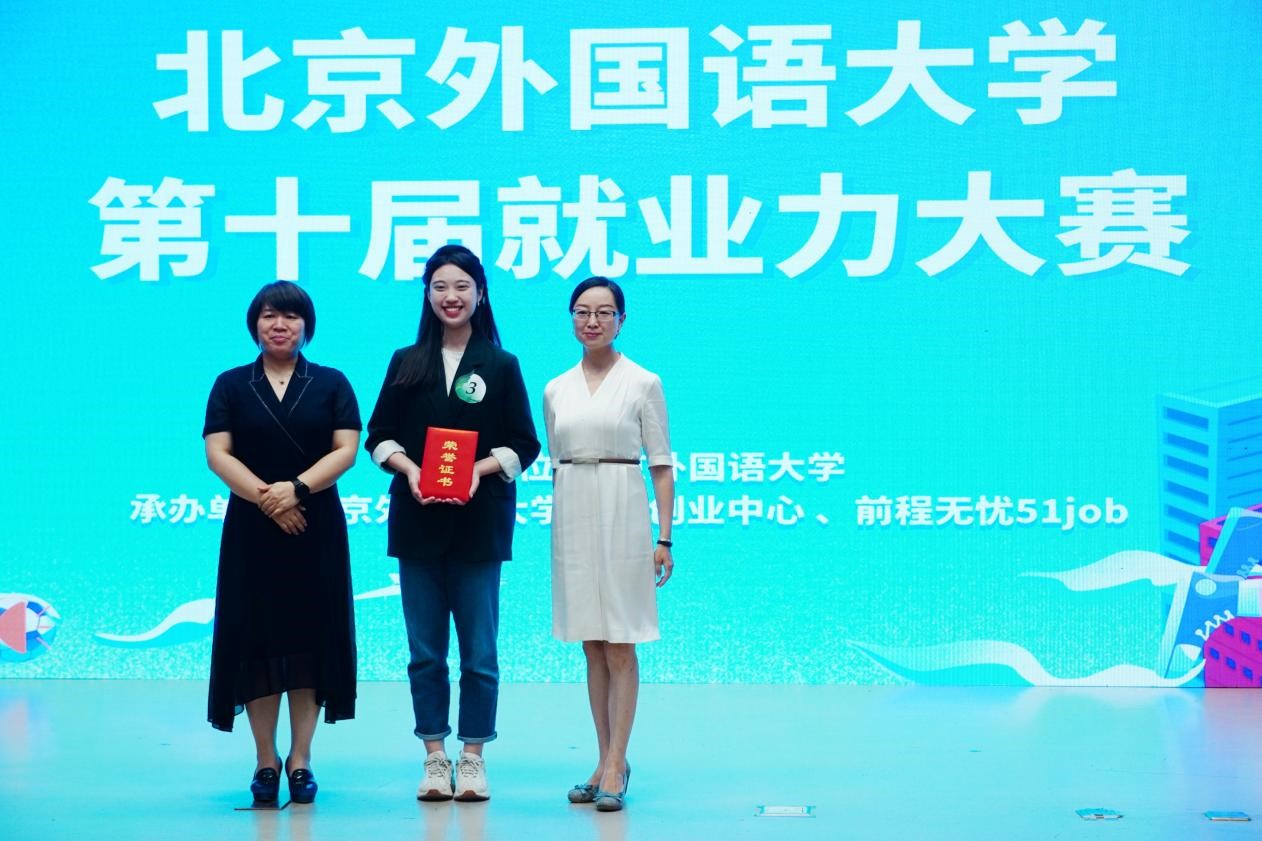 6月7日,北京外国语大学第十届就业力大赛决赛在阿语楼国会厅举行,必赢bwin线路检测中心外交学专业20级本科生王璟骊获得第一名。