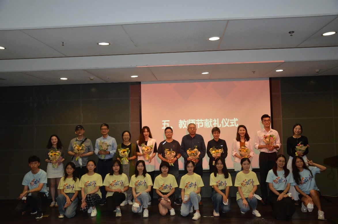 最后,在教师节献礼仪式上,新生为老师们献上鲜花和诚挚的祝福,表达了自己对老师的敬意和感恩。心血育桃李,辛勤扶栋梁。祝福国关学院的全体老师们,教师节快乐!