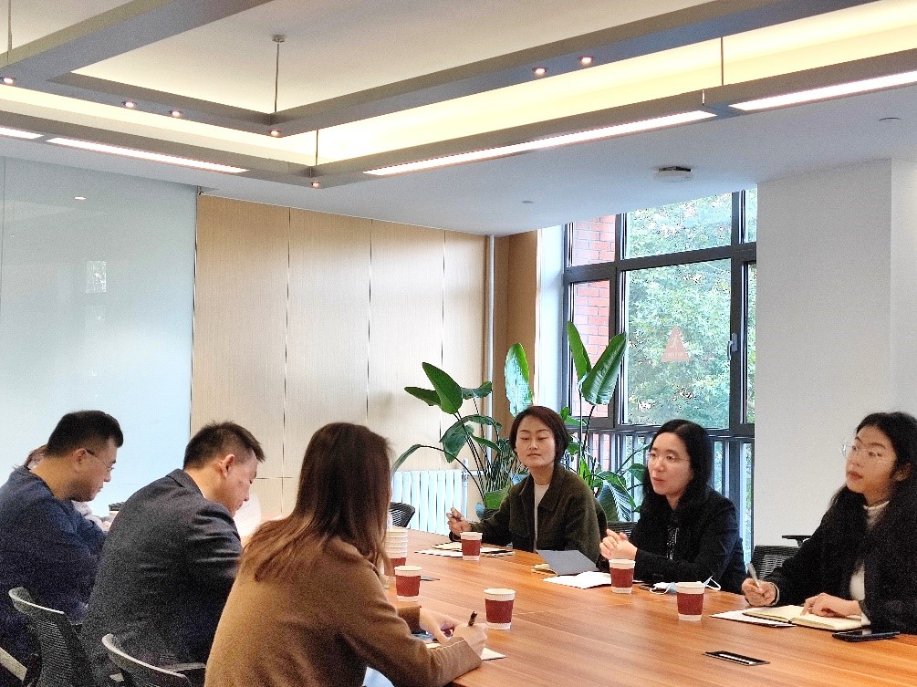10月20日上午,团中央国际联络部刘凯处长一行到访必赢bwin线路检测中心,与党总支书记张效民、副院长杨毅、团总支书记钱梦婷等进行座谈,就建立青年外交全国院校联盟一事进行研讨。